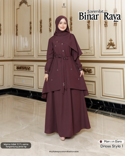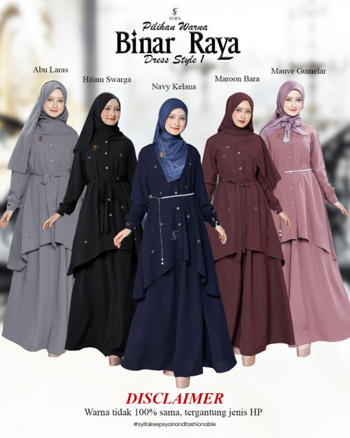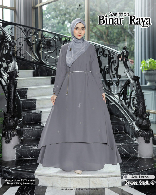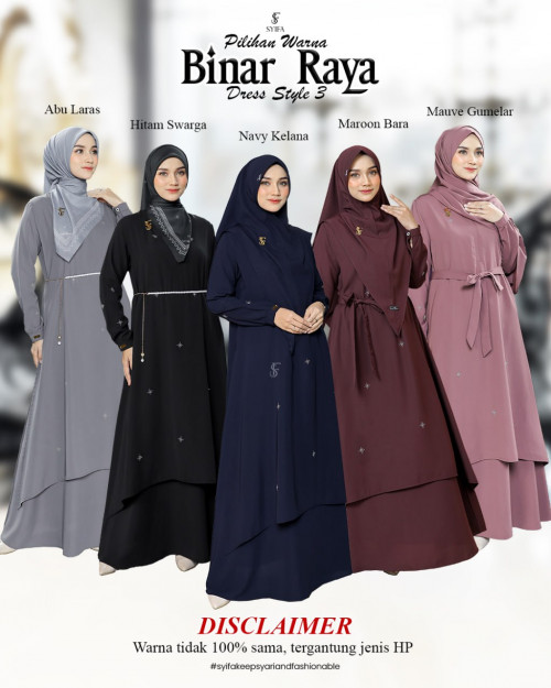 STYLE 3 DRESS LAYER SET SCARF MOM FAMSET ADHA 2026 BINAR RAYA BY SYIFA
