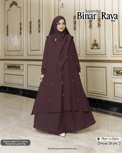 STYLE 3 DRESS LAYER SET SCARF MOM FAMSET 2026 (DISCLAIMER) BINAR RAYA BY SYIFA